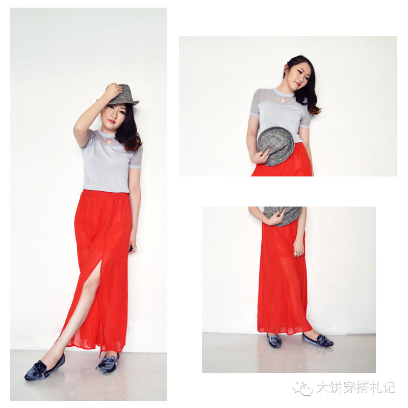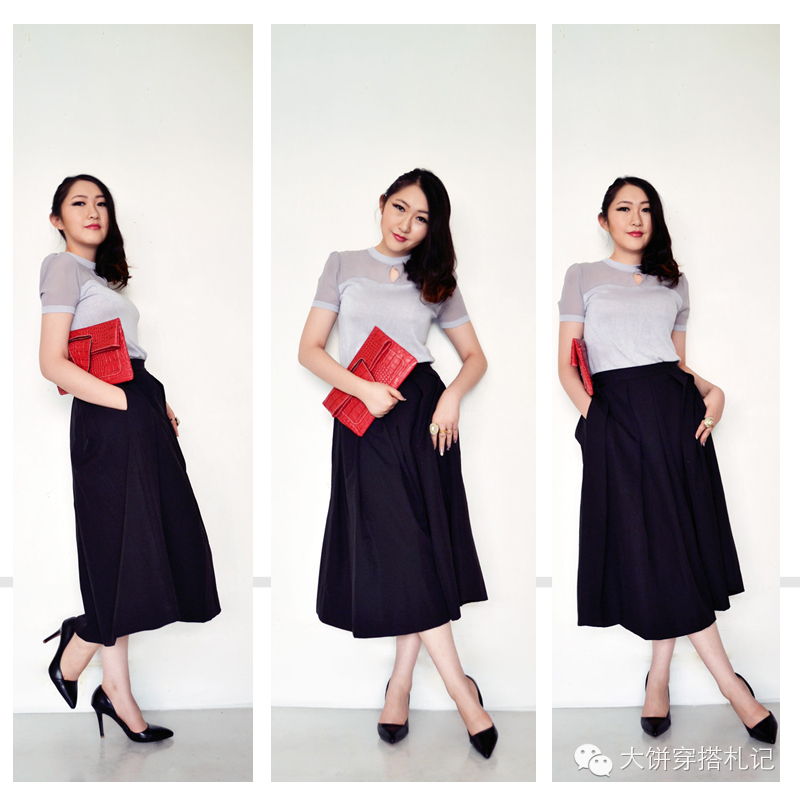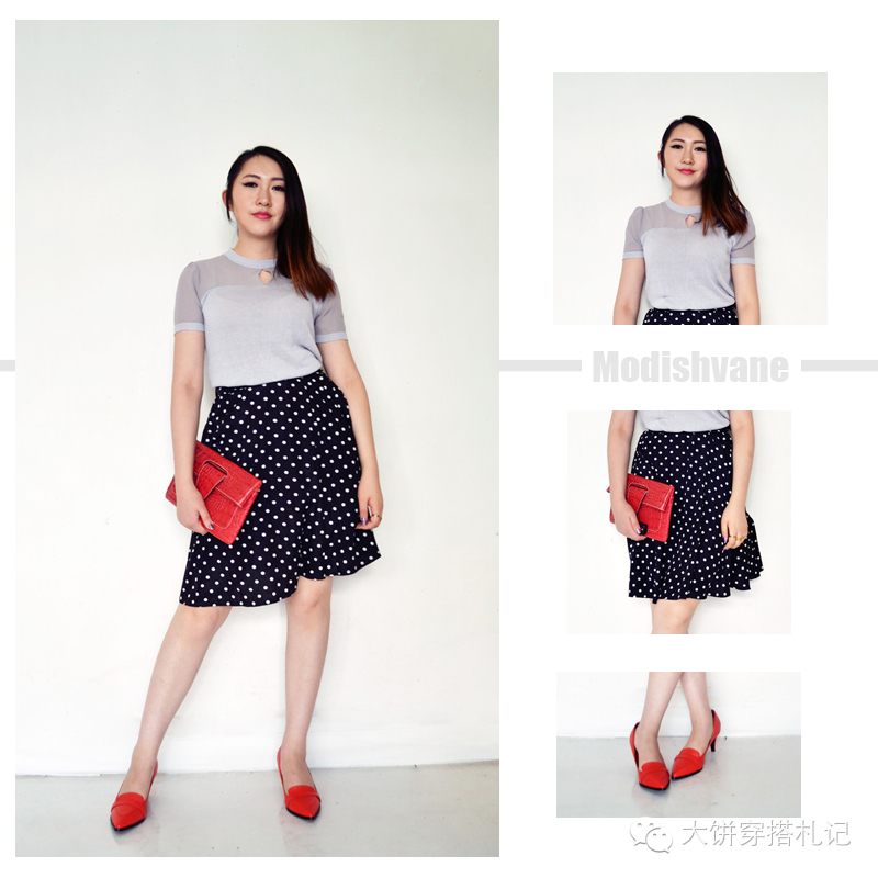 既要能上班又能应对浪漫约会,那么阔摆的及膝半裙是不错的选择。其实想要淡淡的温柔感那么搭配上灰色的单鞋就好,但我想要有亮点,不能被忽视的约会怎能就淡淡过度?所以小红鞋小红包再次上阵,上镜率太高,么有地址,赤裸裸的硬伤。