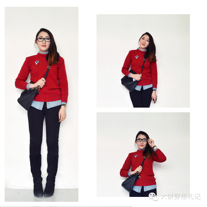 饼姑娘难得凹一回学院风,表嫌弃啊,扮嫩的事早就不干了,但是作为基础单品,还真是啥风格都能露个脸。毛衣是我娘亲年轻时候自己织的纯羊毛,春秋天用来搭配针织衫就可以哦~但是大饼的针织衫是黑色和宝蓝滴,so~这毛衣颜色最搭啦。有姑娘说大饼应该搭配巴洛克风的鞋子,但是大饼受不了颜色乱另外我是胖姑娘,所以下半身一码色显瘦显高最适合我。这一身大冬天加个大衣,出门鸟~