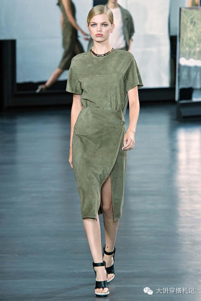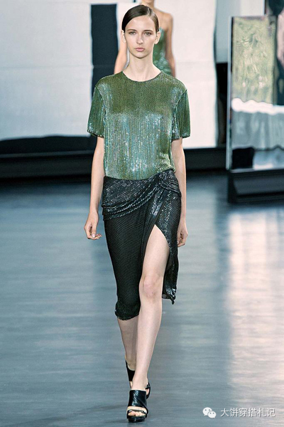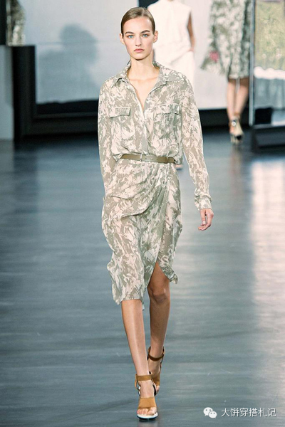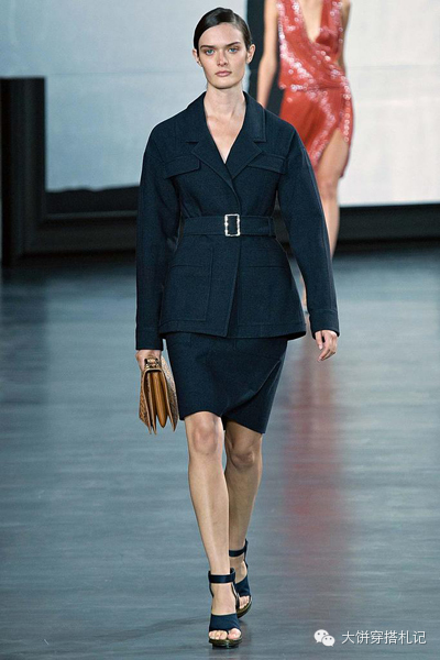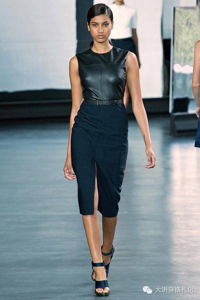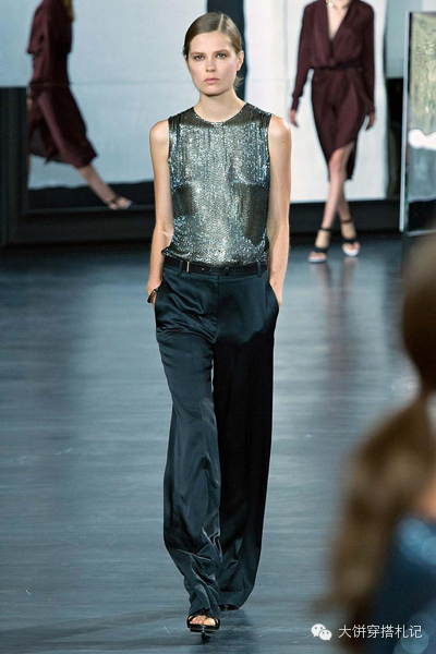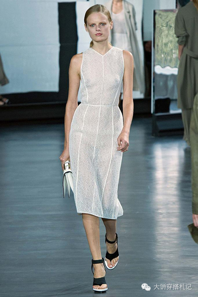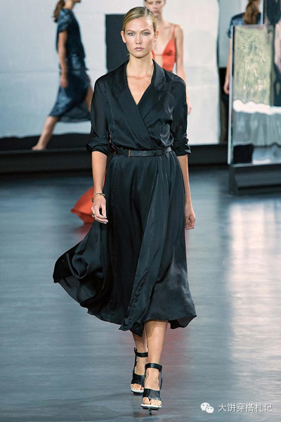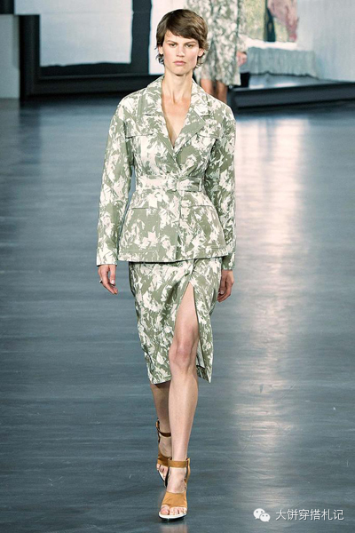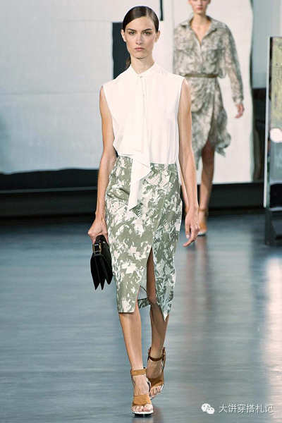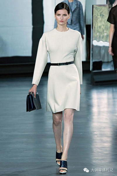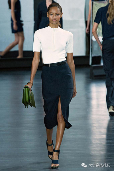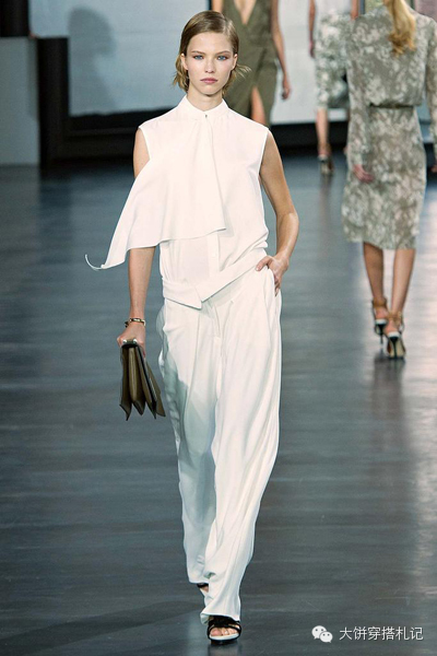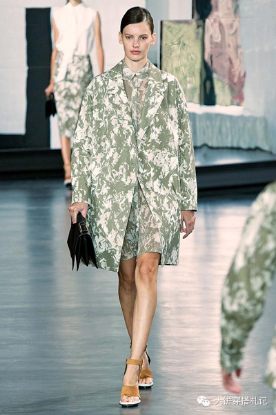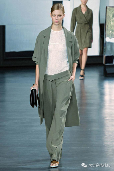 整场秀都给你保持了干净的即视感,常见的中性黑、白、橄榄绿、深蓝职场色,还有加入的青灰、大理石色着现质感、芥末色,不好意思,就算用了光泽感的金属面料,都成就出的淡雅劲儿饼饼已美哭。