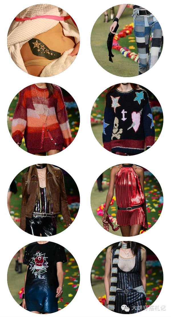 时尚本就是场循环,玩味复古正在圈内盛行,TOMMY HILFIGER也决定为这把火添油助推。不管TOMMY是在向50s的猫王的、60s的披头士、还是弥虹闪烁舞池里的Disco……致敬,重金属、麻豆身上叛逆的纹身、碰撞着的彩色条纹和贯穿始终闪烁的BlingBling小星星、……还是随手飘逸着的丝质腕带、mini皮裙、阔腿裤、耀眼的长短靴、……各种摇滚元素的集合,TOMMY HILFIGER完整的为我们重现了70s的摇滚音乐盛宴。