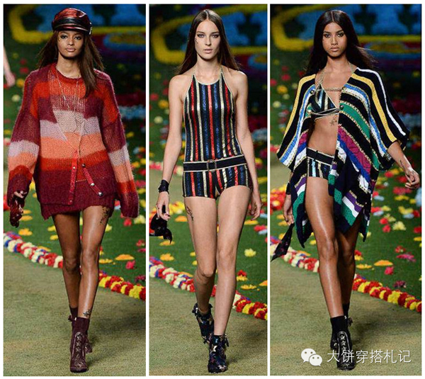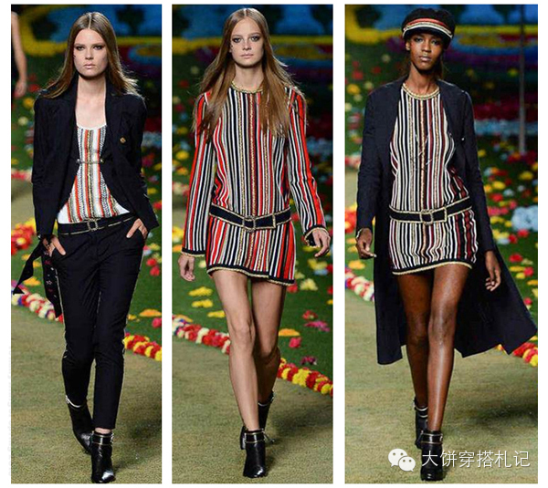 众所周知TOMMY就是玩色典范,相比2014秋冬的格纹玩色,这次搬上秀场的玩色组合是五彩条纹。