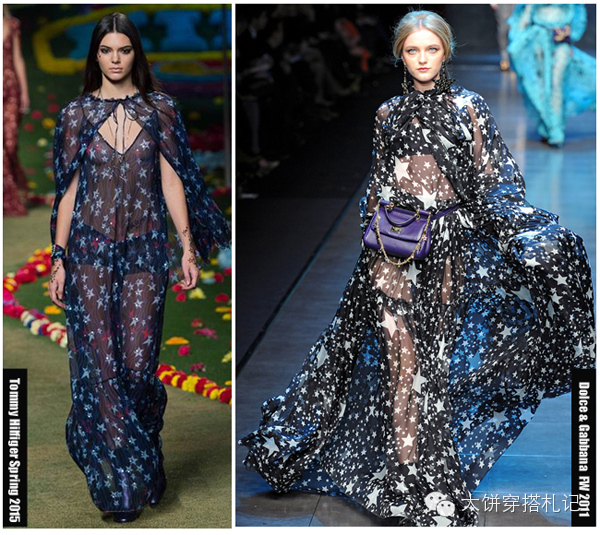 波西米亚风的星星透视长裙在Dolce & Gabbana 2011秋冬秀场上寻觅到踪影。
