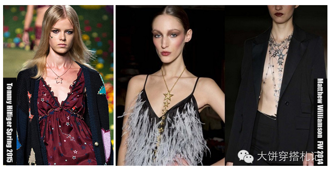 而用于贯穿始终的TOMMY HILFIGER星星项链也不是专属,Azza Fahmy为Matthew Williamson2014秋冬秀场设计的星星珠宝也引起过不小的反响。