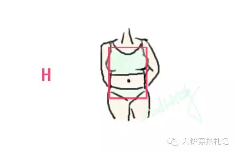 ⑥【H型身材】很多地方称之为矩形身材,上中下等宽,更加介于X和O之间,H形体型特点:【胸部、腰部、臀部围度差较小】缺乏S感的韵味,大饼觉得I型可以说属于H的一小部分哦~但是因为穿搭差异不小所以后面要区分开来说啦~