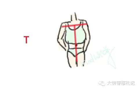 ⑦【T型身材】为什么还要特别分出一个T型身材,T形身材通常呈现I型身材的【平胸无腰窄臀的性质,但是特点在于肩宽】大饼特别提醒一般正常身材的mm肩宽在36-39居多哦~。