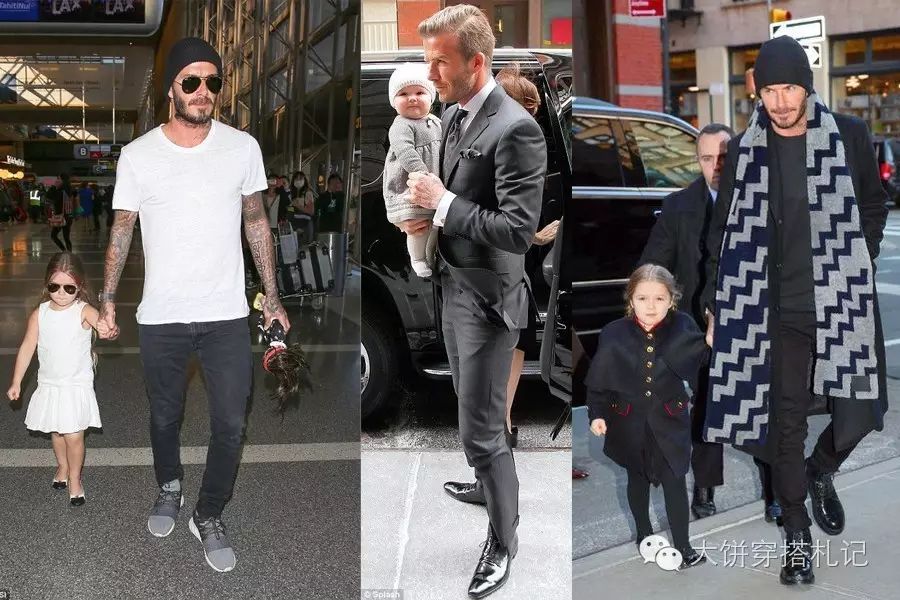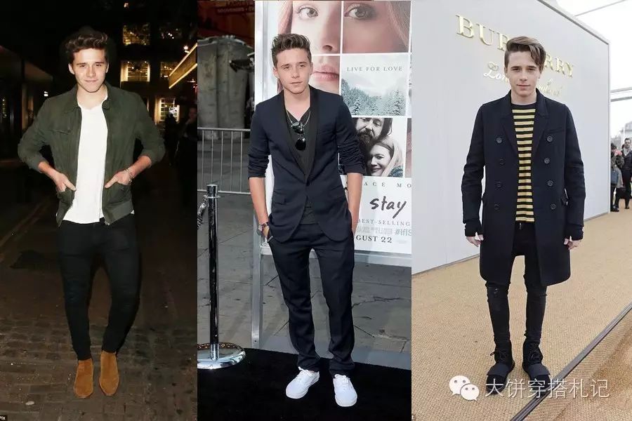 布鲁克林的穿衣路线,无论是色彩还是单品的挑选上都比老爸年轻的多。