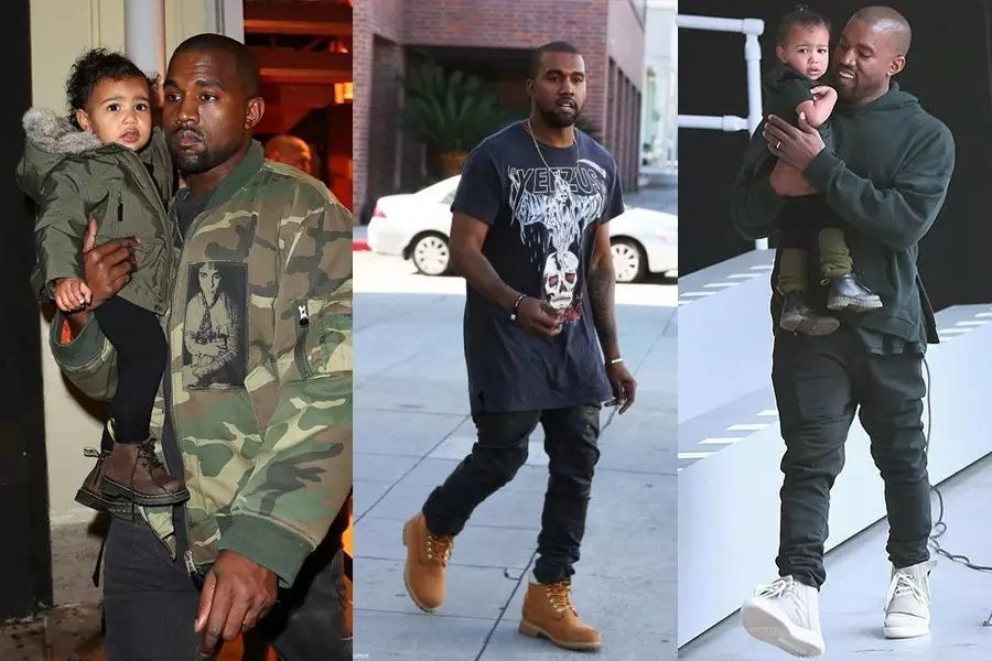 作为饶舌歌手,侃爷的日常风格是典型的嘻哈路线,偏爱夸张的摇滚印花T,是个卫衣控,并且狂迷黑色和军绿色,大金链也是心头好。小西北经常随着老妈的性感路线和老爸的嘻哈风自由切换。↓