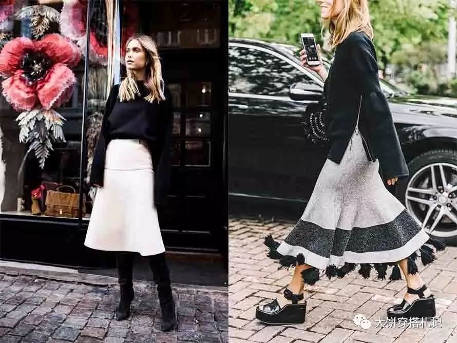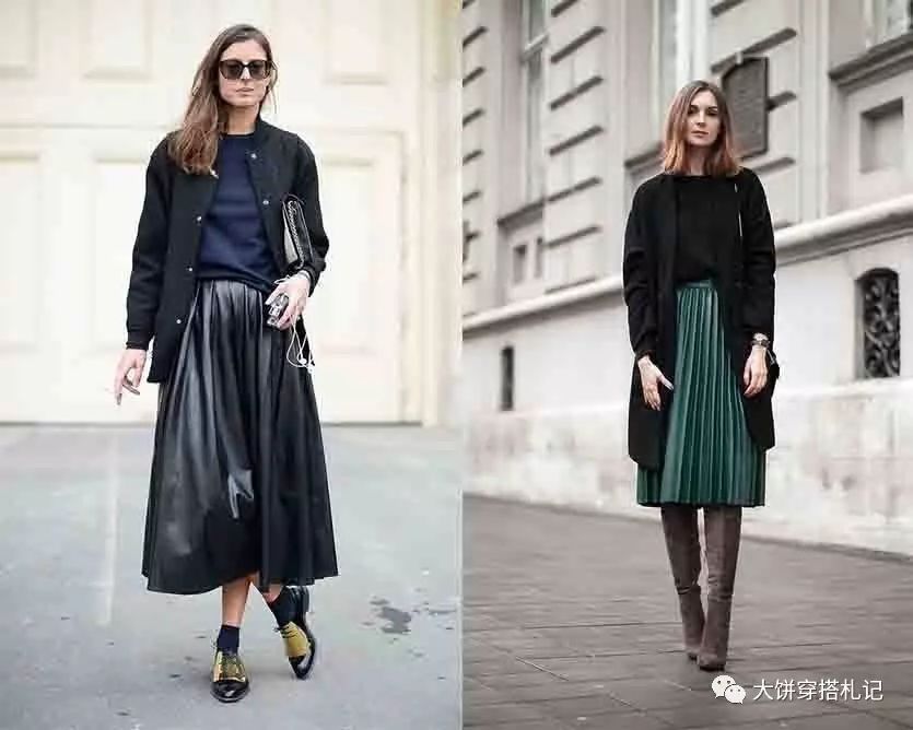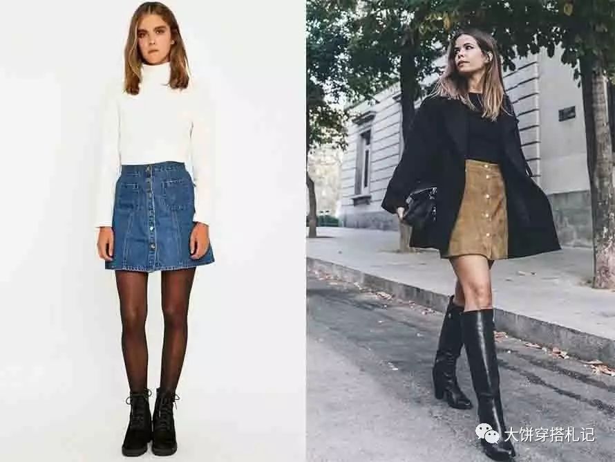 1 小A裙冬日里也可以搭配打底袜和过膝靴继续穿,选择皮质、牛仔等厚实面料皆可。