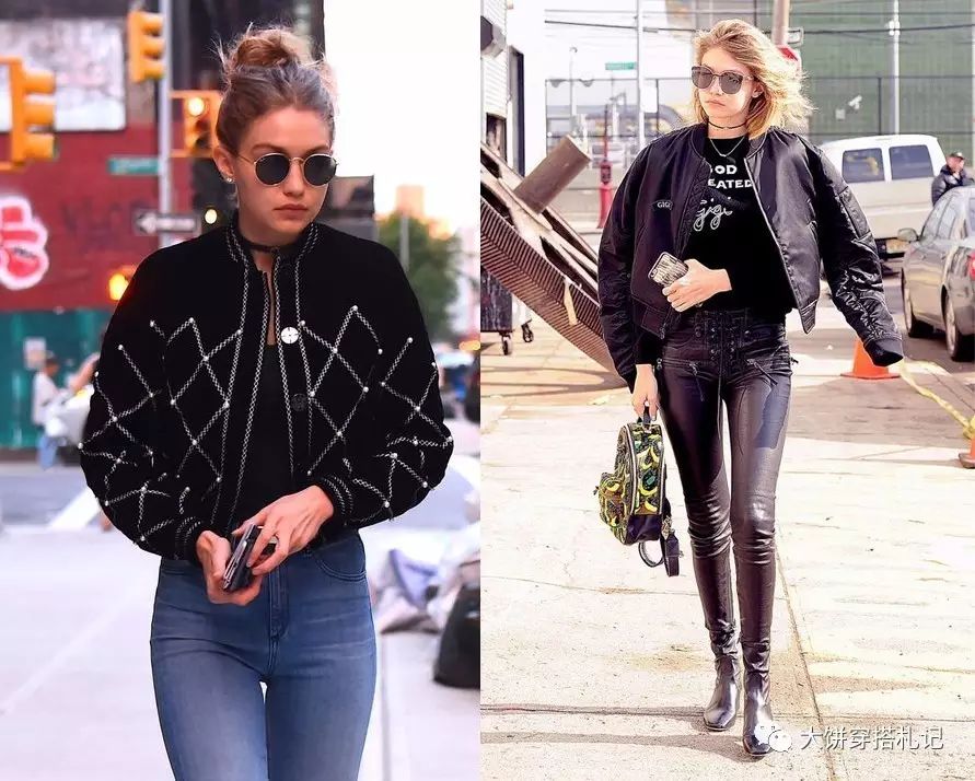 1 在腰部收紧的bomb夹克可以突出细腰以及臀部曲线,Gigi的冬装里总是少不了这一件。而X型姑娘们的仿皮草、棉衣、羽绒也可以在这型里选~