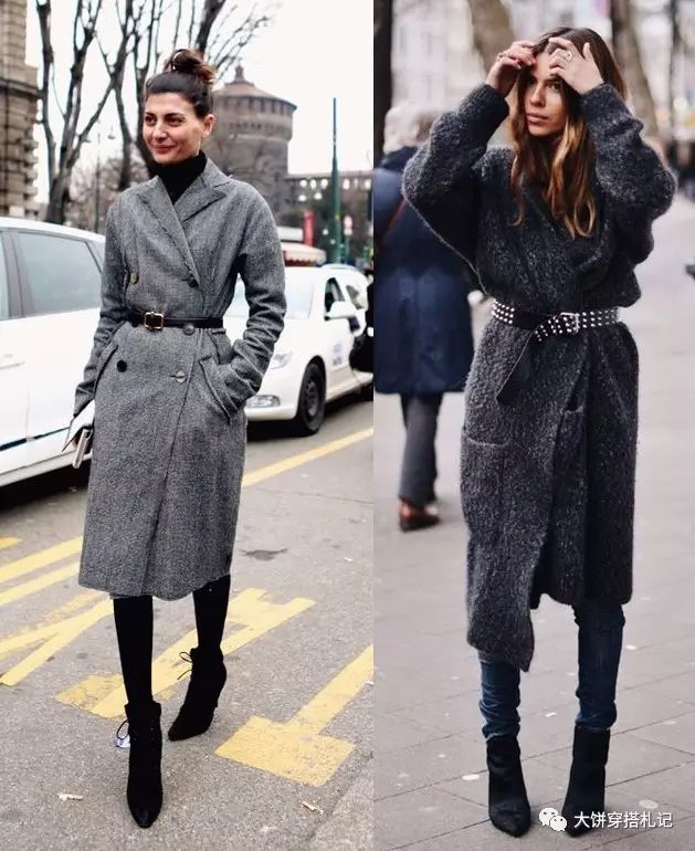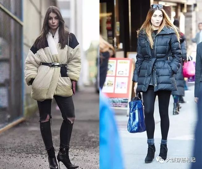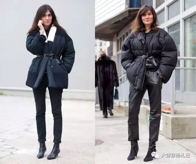 除了这些实质性的保暖单品,其实一些小物件也能起到显瘦的作用。比如能够勒出细腰的腰带。同样是膨胀的面包羽绒服,一条腰带对上半身的修饰完全不同哦~