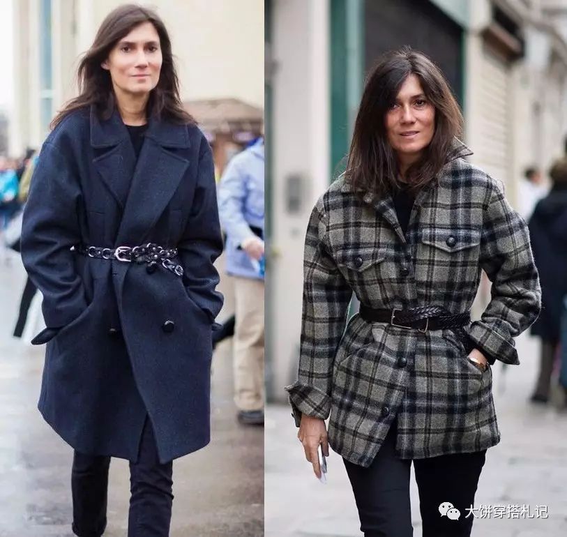 法国版《VOGUE》主编Emmanuelle Alt一到了冬天就爱这么穿~除了腿要显瘦,还要用腰带加持。