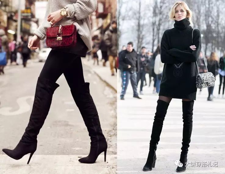 对于过膝靴的选择,腿型完美的姑娘大可以选择软皮材质,裹得越紧自然越显瘦;而腿部还是不够自信?厚实的翻毛皮会更适合。