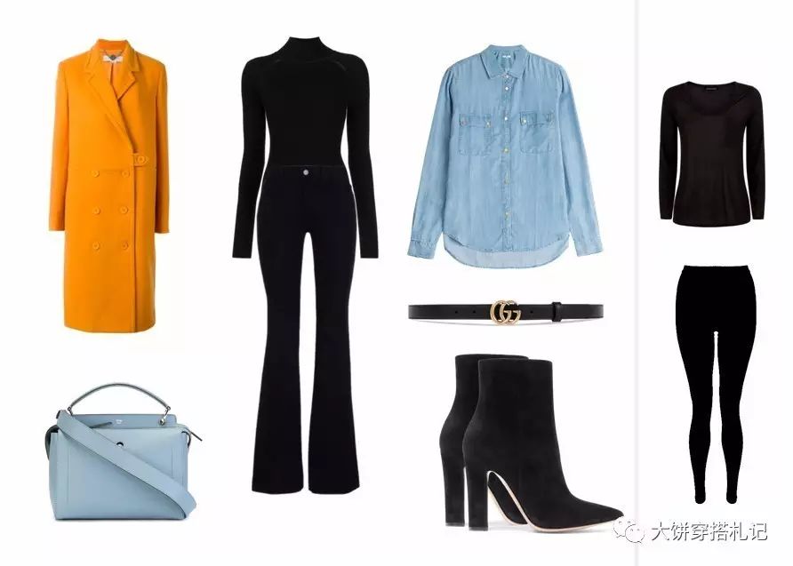 用九分的阔腿裤、喇叭裤、直筒裤、midi裙……遮住你的小腿肚搭配裹紧脚踝的袜靴就好了咯。当然饼自己最简易的还是短外套搭配高腰的A字西装裤 同色系袜靴最显高瘦了咯~内里塞上保暖打底裤打底衫神马的自行操作。