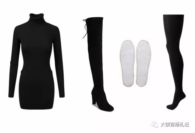 当然你要说下半身太冷?过膝靴加上棉绒的鞋垫,穿上羊绒短袜;抓绒的铅笔裤