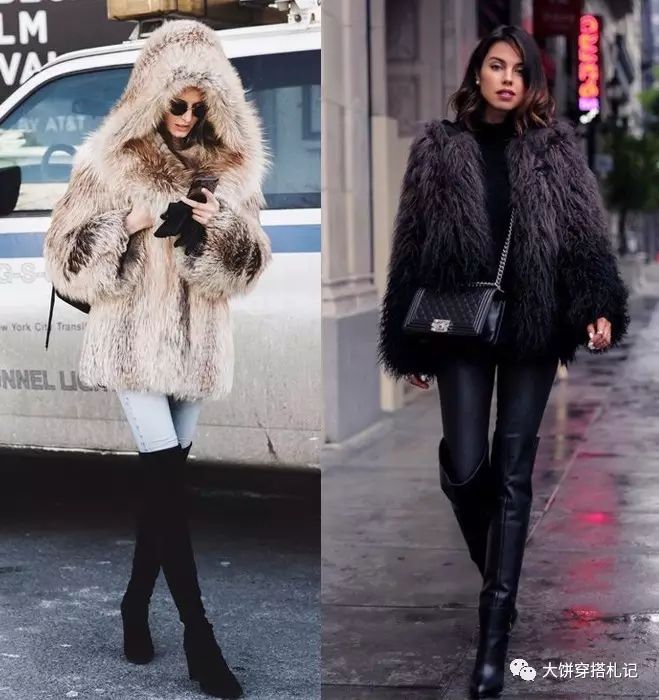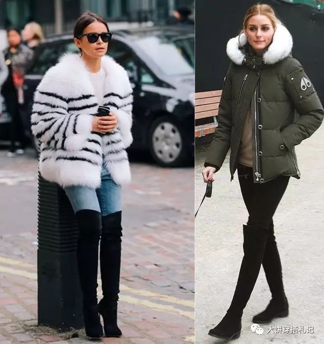 对于腿部匀称的姑娘来说,拥有一双过膝靴是冬日里显高、显瘦甚至保暖的利器。纵使是膨胀的羽绒服、仿皮草,也能通过它得到化解~