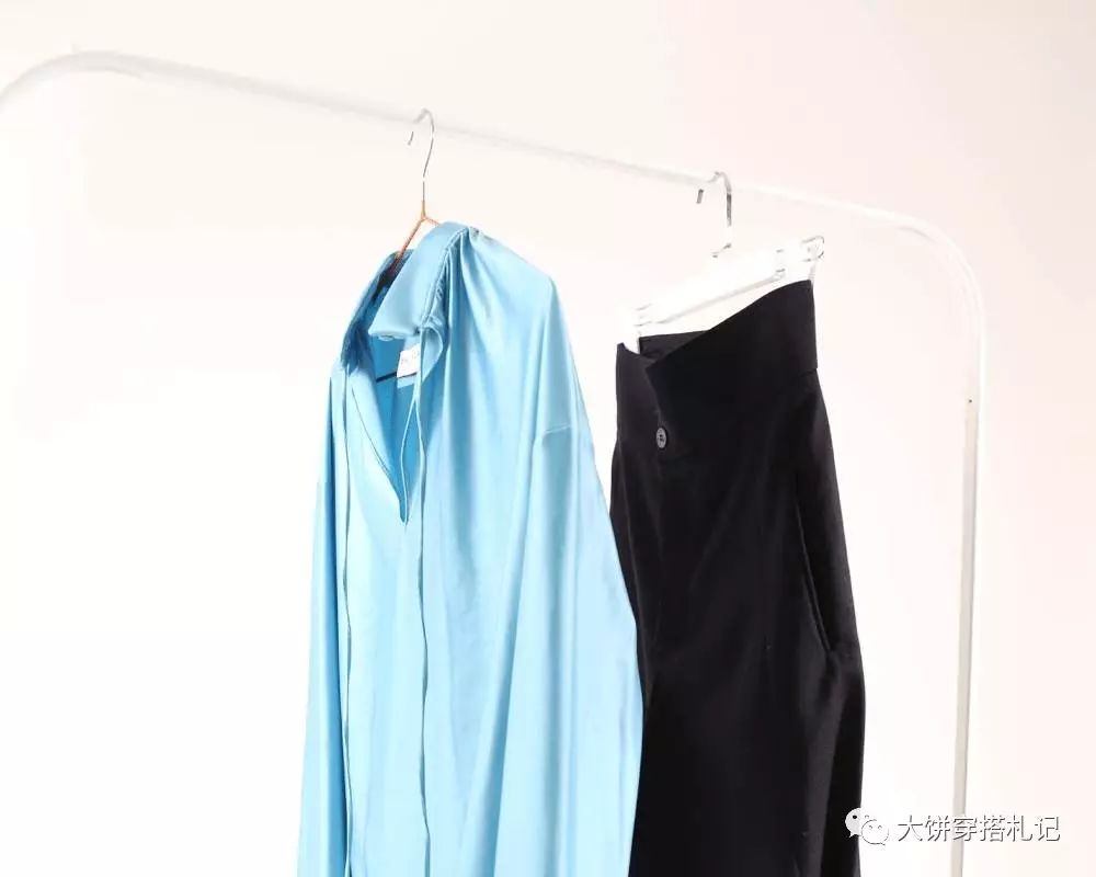 而粉与蓝的碰撞,用上垂坠感的类绸缎面料