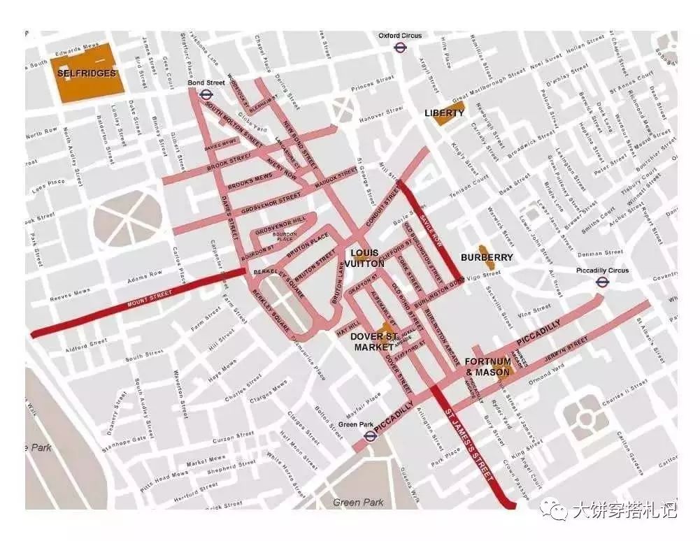如果想要雨露均沾,什么价位的品牌都能逛到,那么连在一块的牛津鞋、摄政街、邦德街以及皮卡迪利广场,布满了各种各样的商业品牌,绝对不容错过: