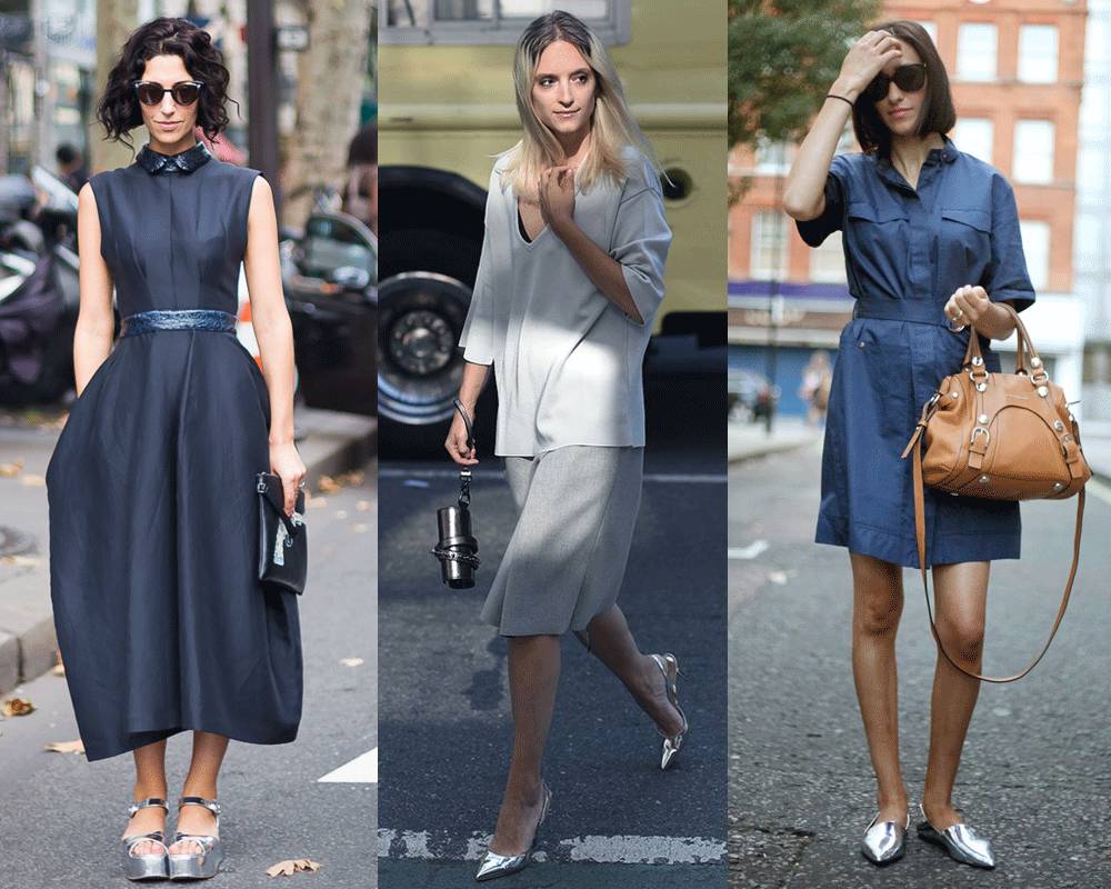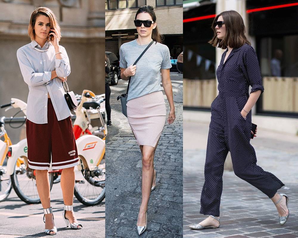 这样的银色鞋子与夏日里常见的白色、清浅马克龙色系、灰色、尤其是蓝色搭配都不挑剔,选择单鞋、凉鞋或近期大火的穆勒都可以!