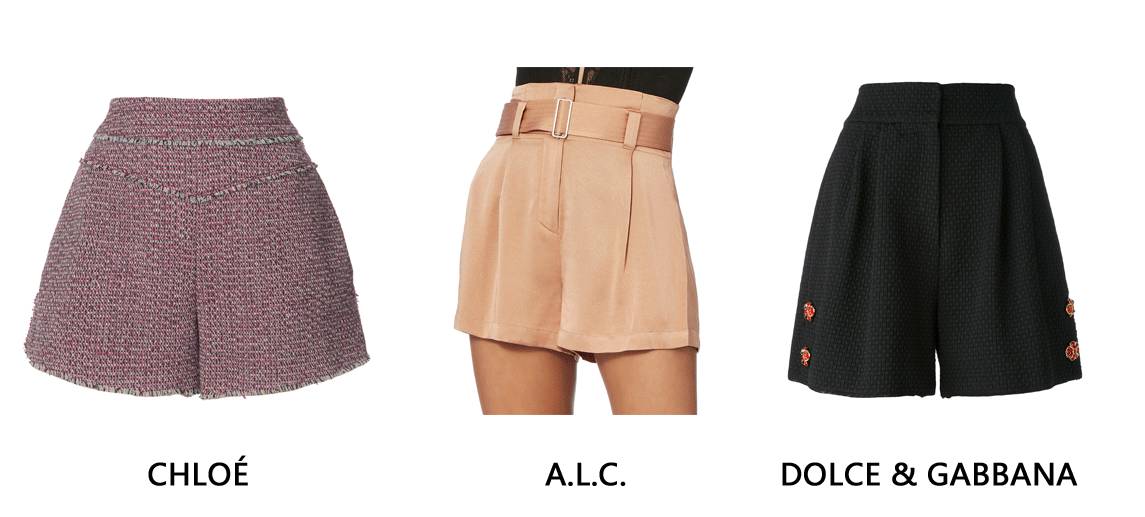 这种短裤,长度大概在大腿中部到膝盖以上的位置,整个裤腿都呈喇叭形,中高腰设计,面料往往都很凸显质感;廓形感很好的光泽缎面、皮质;有分量感的薄呢、花纹图案;垂坠感的西装料,等等……这个版型也是饼的爱了~