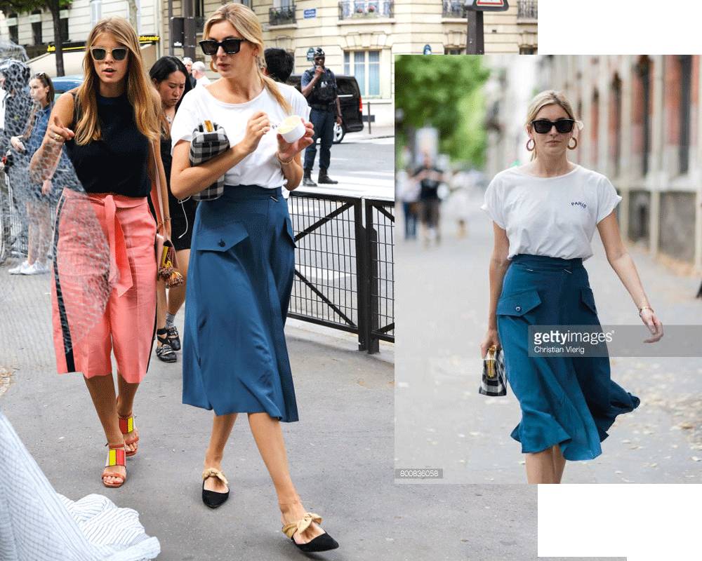 在刚过去的男装周,Camille Charriere在Paul Smith在秀场外的一身简单的搭配看起来就清凉不失质感。单品不复杂,白 蓝绿配色自然是凉爽之源,而质感全靠飘逸的裙摆了!