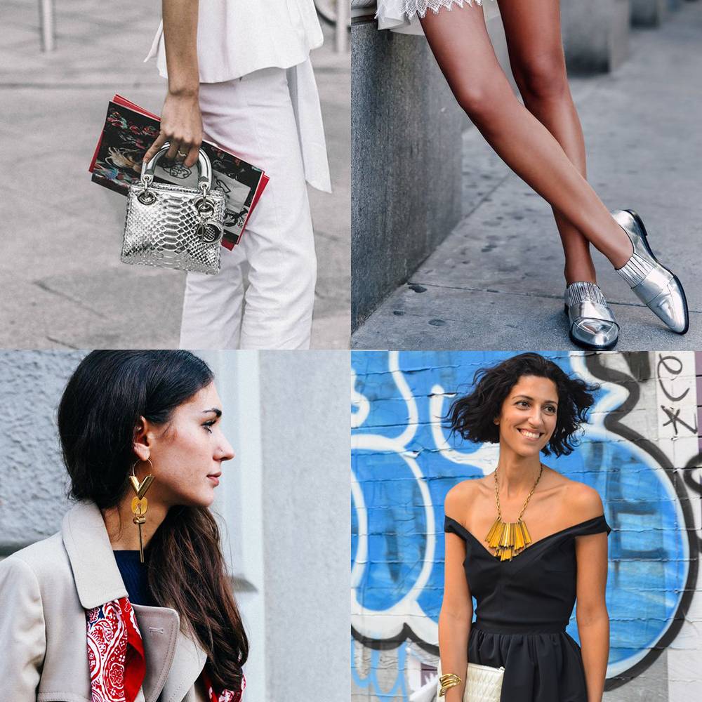 当然金属光泽的单品也并非一定就是指这些不太容易驾驭的大面积裙子、上衣们。金属光泽的配件、包包和饰品们,也很适合为夏日里轻薄服装增加质感。