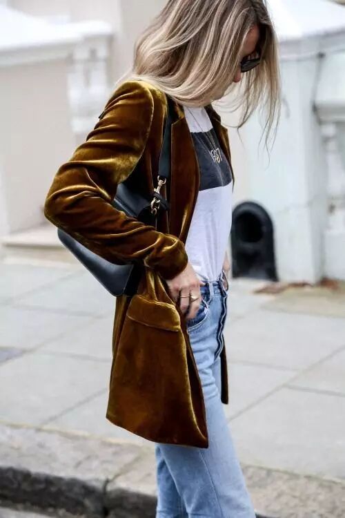 丝绒面料自带很耀眼的光泽感,一般很少有人日常穿。但其实,只要选对单品,穿出去也不是什么难事儿。