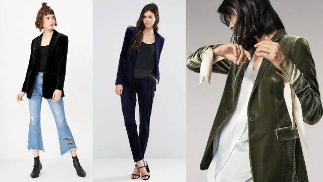 因为丝绒算是一种睡衣风面料,所以想入一件看起来不那么慵懒,通勤也能穿的西装,Miss 烧饼建议买剪裁利落,面料偏硬挺的修身款。太宽松的话,看起来可能不那么有质感。