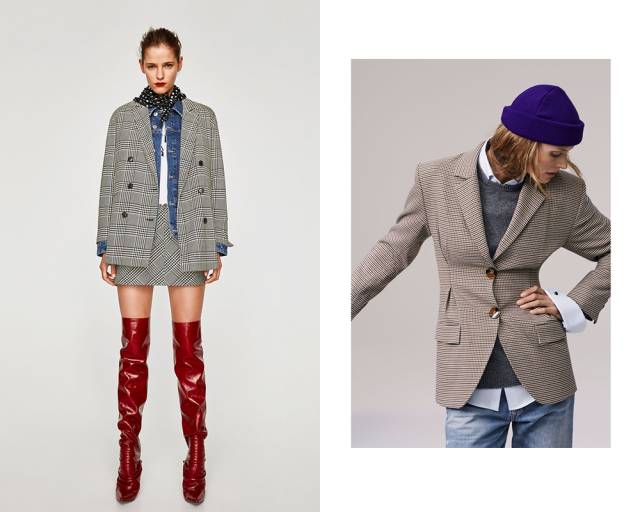 其实今年主要流行两种格纹,一个是威尔士亲王格,一个是千鸟格,两者略有区别,Zara都有出。
