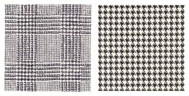 千鸟格从威尔士亲王格衍生过来,虽然人家中文名很美,但英文名其实很霸气,叫Houndstooth,因为长得像猎狗的牙齿。
