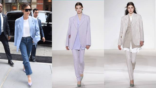 Beckham最新的2018春夏系列里也出了这样的款式,温柔的配色弱化了廓形带来的强势感,是Miss