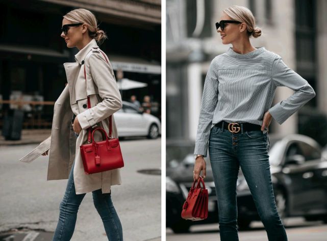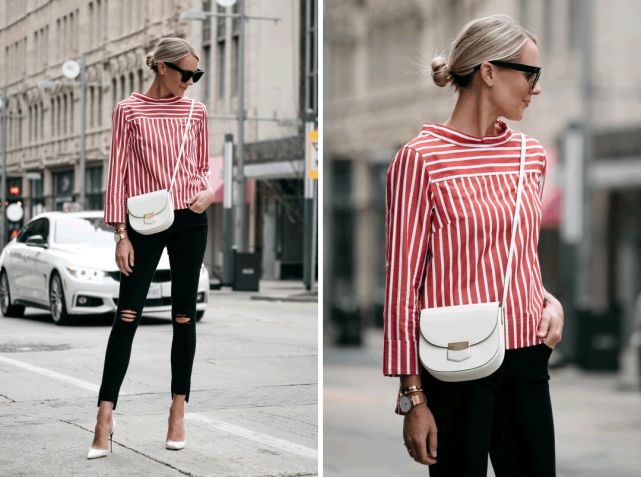 个人最爱Amy的这一身,红白条纹衬衫和包包的颜色呼应,点亮了夏天,但又超级清爽~走在路上一定回头率很高。