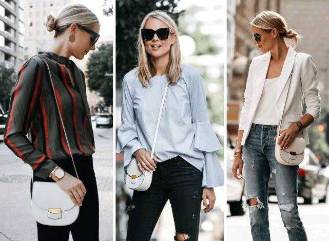 它尤其适合春夏背。衬衫,荷叶边上衣,或是白色小西装,几乎衣橱里的所有单品都能hold住~