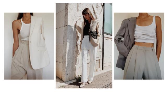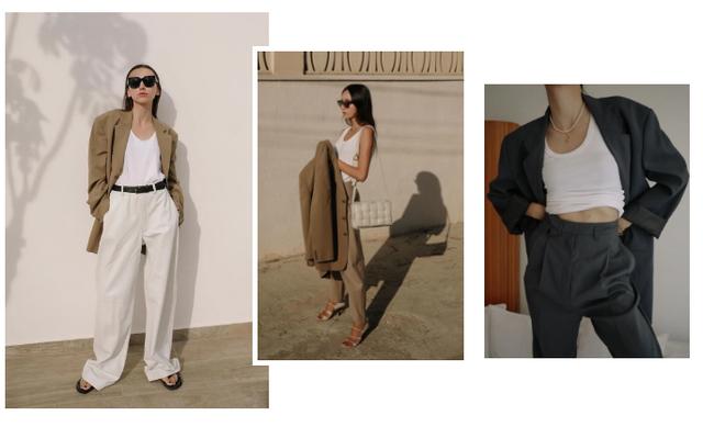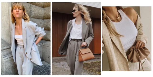 而这招玩的最妙的,必须是德国博主Beatrice Gutu!她真的把黑、白、卡其玩上天了!廓形西装往背心外面那么一套,即便踩双人字拖,都觉得是个度假中的精英女企业家!