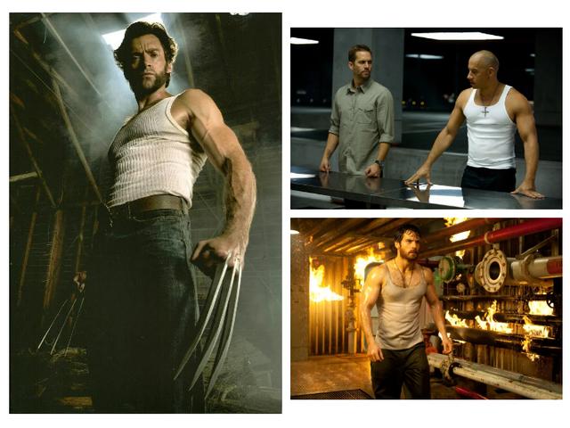 在每部电影中,当男人感觉越来越热或烦躁的时候,他们就会撕掉衬衫,露出里面满是汗渍的白色紧身背心。