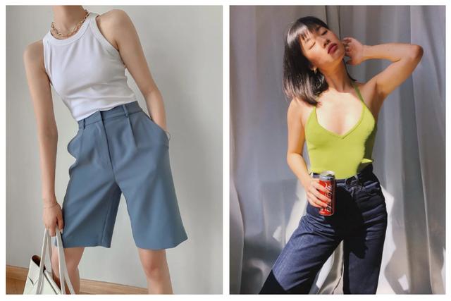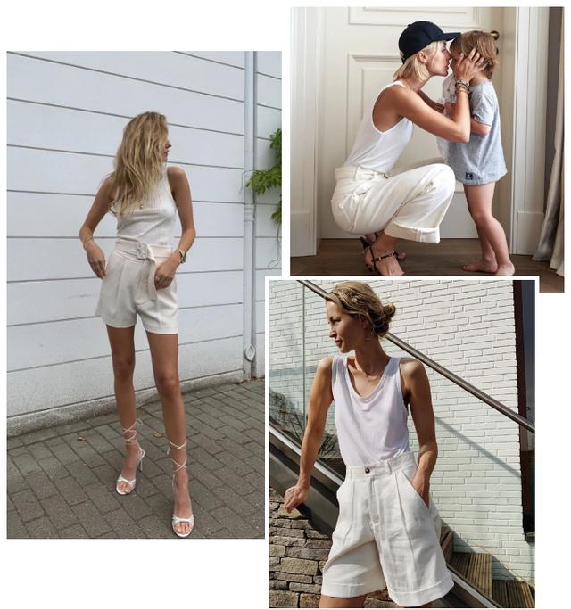 除了西装裤,还可以像德国造型师Viky Rader这样pick牛仔阔腿裤。或是荷兰博主Anouk Yve和德国博主Marie von Behrens穿的这种宽松短裤也蛮不错,搭配白色背心一样清爽又舒适。