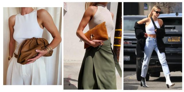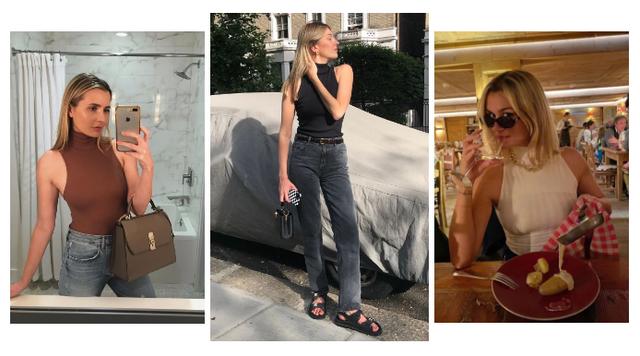 比较常见的有两种,分别是Rosie HW这种脖子上一个高领圈,袖口往内挖的款式,偏女人味些;一种是俄罗斯模特Catherine Boti这种普通的工字背心款,比较休闲。