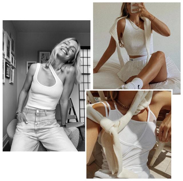 英国博主Lauren Crowe更是买了好多颜色的背心,绿色、蓝色、黄色……不知道怎么搭的话,牛仔裤或小白裤总是不会错的!