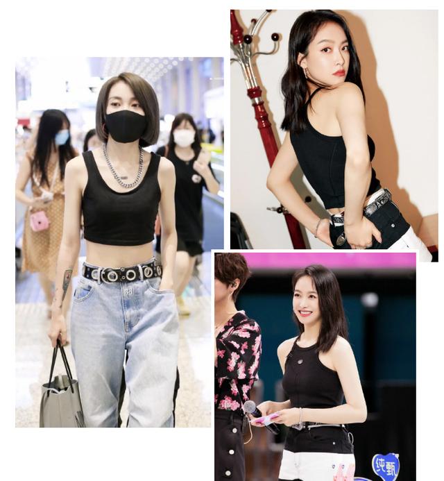 还有前不久在《青你2》中卡10回家的乃万,和《创造营》里的宋茜,都pick了短款的黑色背心,而且还都很统一地搭配了帅帅的牛仔裤: