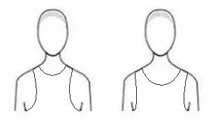 Tank背心在肩带版型上主要有两类,一类是这种内凹设计,在肩膀处呈)(型。