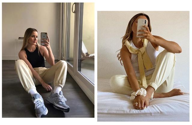 除了牛仔裤,今年因为受疫情影响,好多博主被迫在家营业,都纷纷穿上了运动裤,搭配背心也是超级和谐。