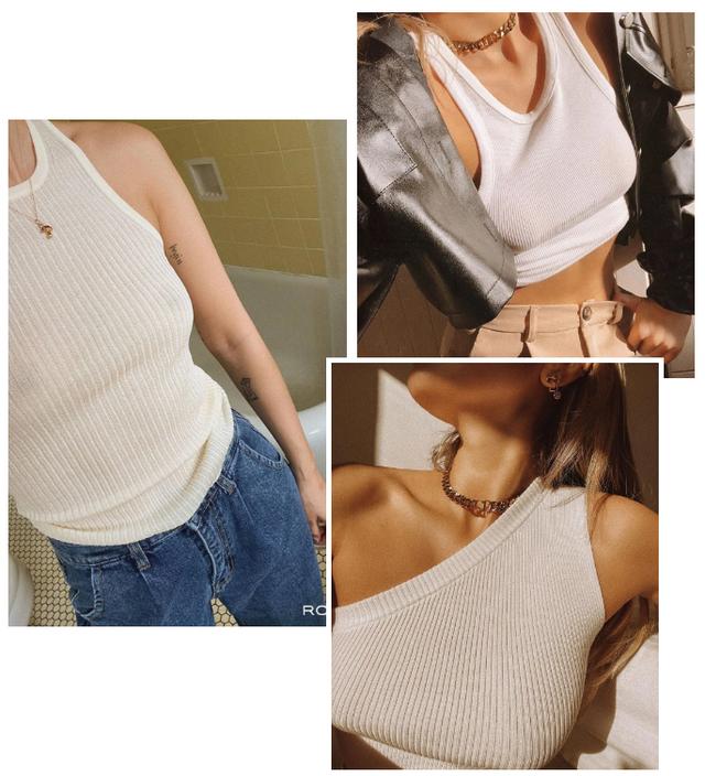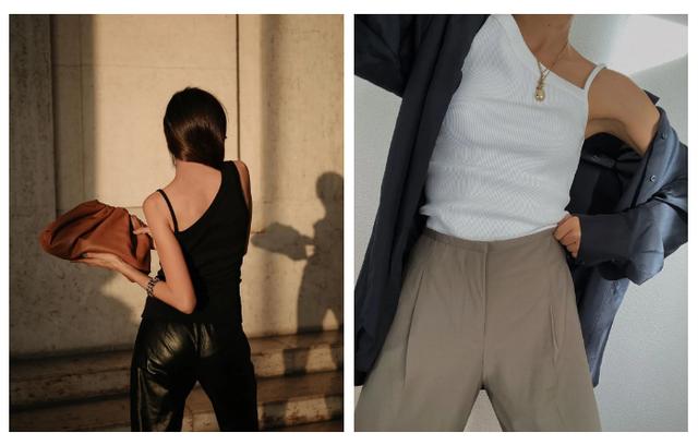 比如设计师品牌Peter Do有款一边宽肩带一边细肩带的背心,Gutu和葡萄牙时尚顾问Débora Rosa都穿过,就很特别。
