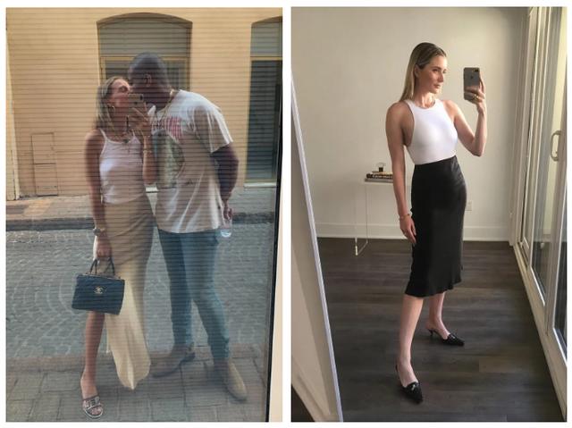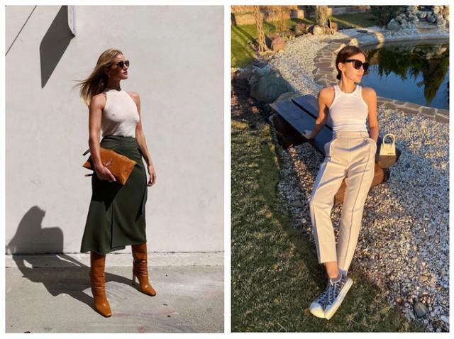 想要低调一点,也可以像德国博主Marie von Behrens和时尚主编Kristen Marie Nichols这样选择基础色的裙子。她俩分别穿了香槟色和黑色,搭白背心也是美的~