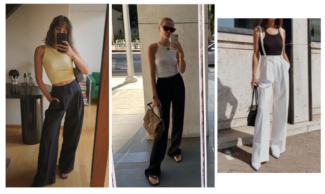 背心作为休闲单品,搭配潇洒的裤装会更好看。尤其是宽松的阔腿裤,跟背心一组正好打造出松紧配,特别适合上身瘦、下身肉肉的梨形身材。