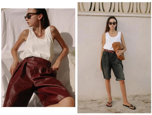 在各种阔腿裤里,背心+皮质百慕大短裤算是之前被BV带火的一组,Gutu和意大利博主Erika Boldrin都有穿过。