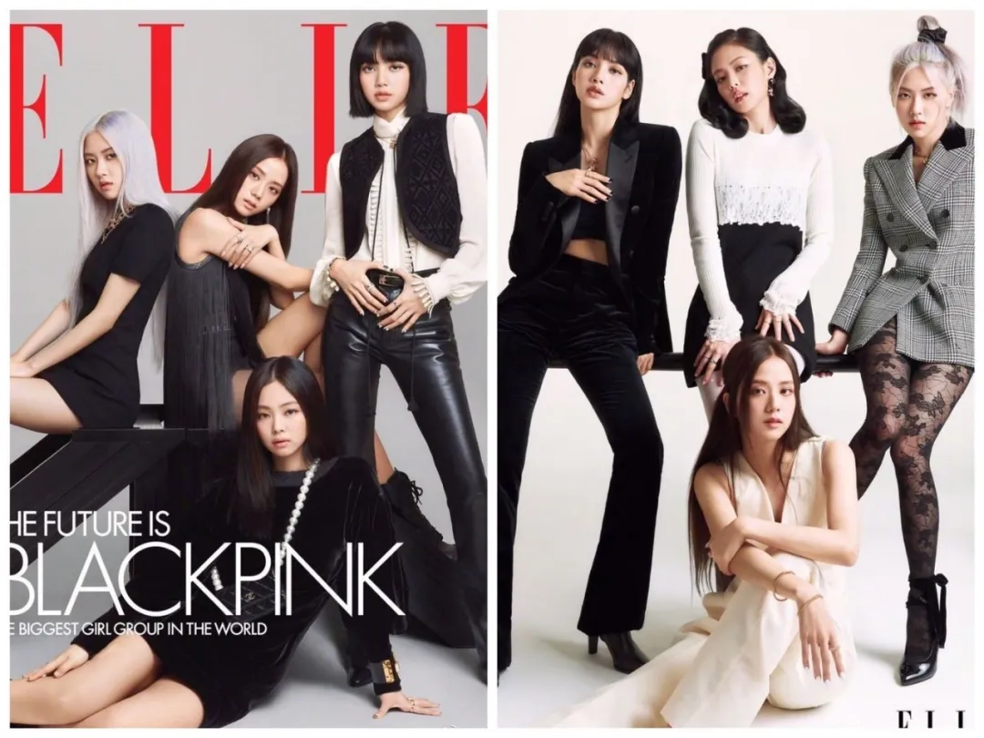 刚公布的美版《ELLE》10月刊,“粉墨”登封,4人里有两个穿马甲亮相。Lisa的来自CELINE、Jisoo的来自Dior。