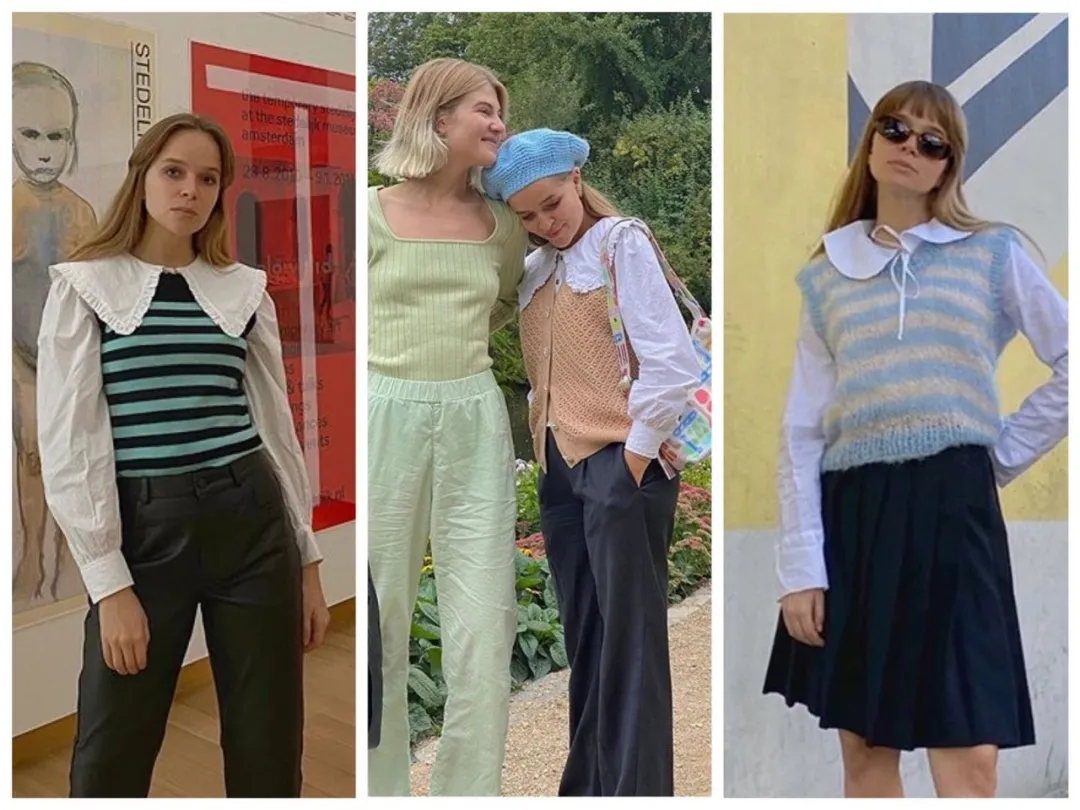 哥本哈根博主Marie的套路总结一下:淡彩色针织马甲+娃娃领白衬衫+黑色下装,就能打造甜而不腻的新Scandi风咯。
