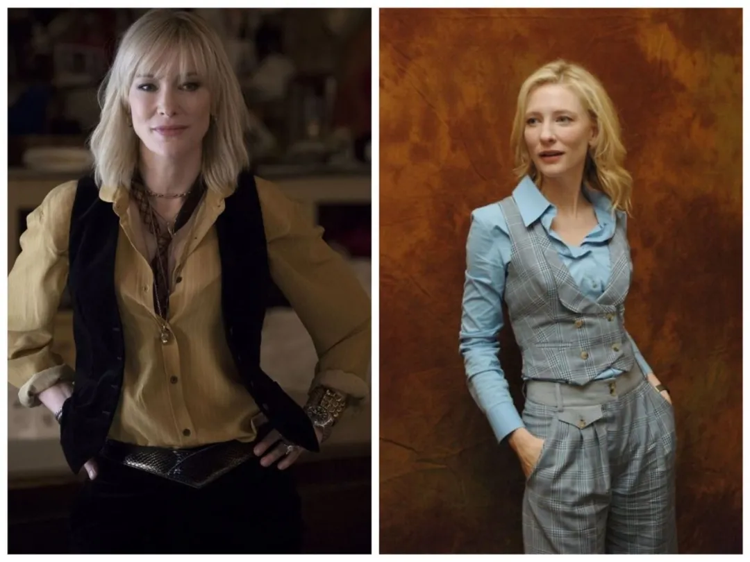 把这种感觉演绎得最有味道的,是凯特大魔王。《瞒天过海美人计》和其他作品里,穿着衬衫、马甲,打着领带的她,分分钟把我掰弯!
