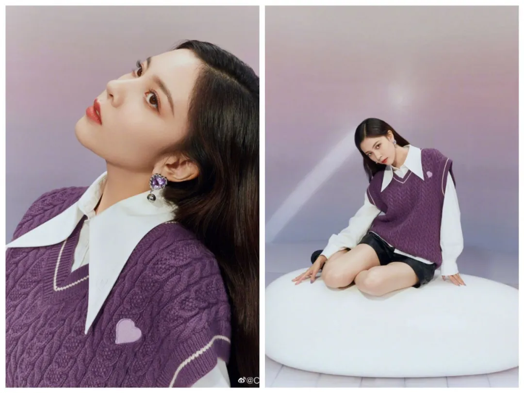 想买的话,不妨试试宋妍霏和乐町合作款。紫色很美,单穿叠搭都时髦,秋冬随便配一件中性色外套就好。