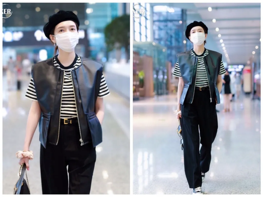 娱乐圈最会穿的女星之一——江疏影也pick哦~搭配条纹短袖、贝雷帽,是我等普通女孩也能驾驭的look没错了!