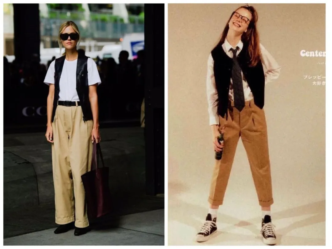 黑马甲+白衬衫+卡其裤+领带+小白鞋的搭配,一直被奉为经典!充满纽约知识分子气息。